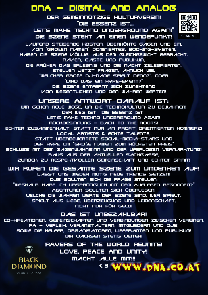 Bitte beachtet auch die Regeln, zB.: den DJ während dem Gig NICHT stören! Respektiert jeden! Toleranz ist uns auch sehr wichtig!